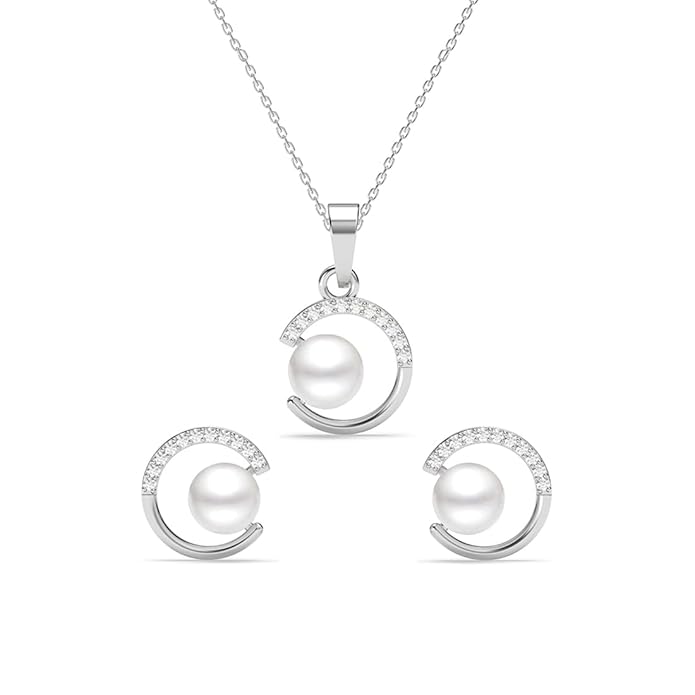 Be the first to review “Clara 925 Sterling Silver Zola Real Pearl Pendant Earrings Chain Necklace Jewellery Set | Platinum Plated, Swiss Zirconia | Gift for Women and Girls”