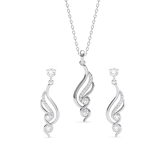 Sterling Silver Swirl Pendant Earrings Chain Necklace Jewellery Set | Platinum Plated, Swiss Zirconia