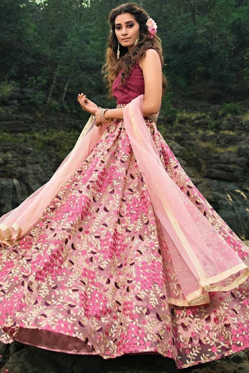 Women’s Net Semi Stitched Lehenga Choli with Dupatta | Thread Embroidery Pattern | Traditional, Wedding, Ethnic Wear Lehenga (Peach)